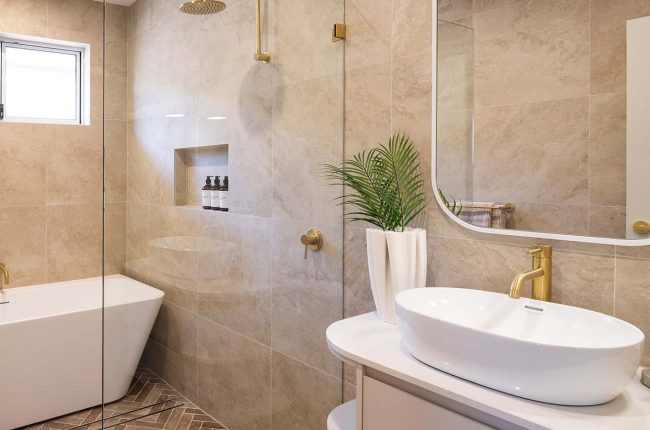 Ascending the stairs, the rumpus room welcomes you to the upper level. The Easycraft Silhouette Cove feature wall immediately draws your eyes to the detail included in this space. Three spacious bedrooms surround the nearby main bathroom, which is complete with a stunning freestanding bath. Journey past the second of the home office spaces to the front of the upper level and find the majestic master suite. Spacious, stylish and private — the master suite proves that even a narrow home can offer grand luxury, complete with an oversized walk-in-robe, ensuite and private deck!