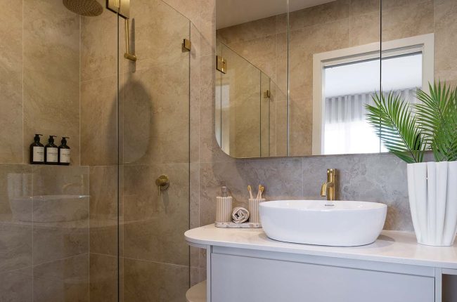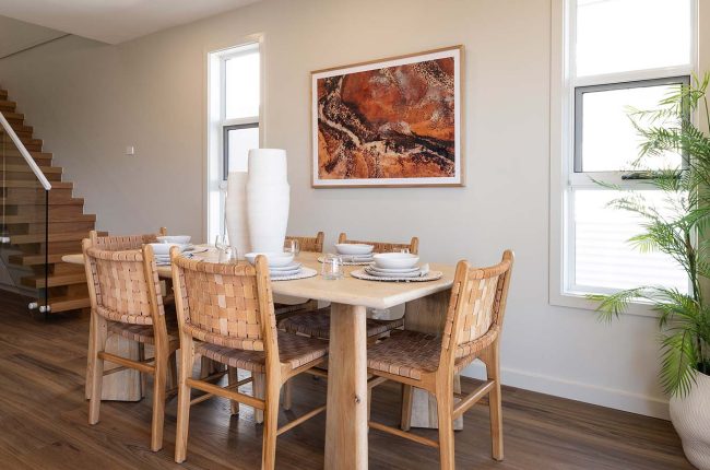 Take a tour through our narrow, two storey Catalina 266 at HomeWorld Oran Park. A punchy floorplan which showcases Shaynna Blaze’s ‘Outback’ Signature Collection theme, this design features five bedrooms and clever storage solutions.