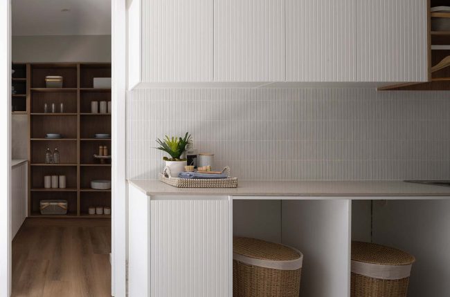 Maximising on every inch of floorplan space, the Sorrento 378 features the ultimate hidden hub — an integrated laundry and mudroom, with adjoining access to the Butler’s Pantry and kitchen. This connected space keeps life organised — from arriving home with groceries, to providing a central storage location for highly used items such as school bags.