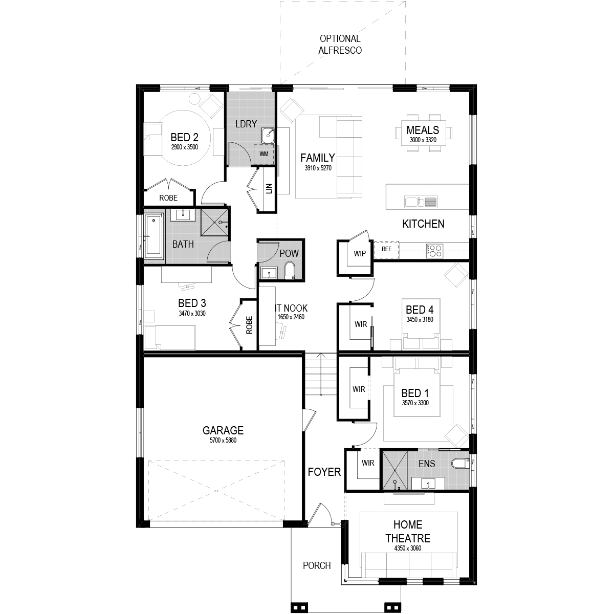 An optional alfresco adjoining the living area completes this modern Australian home.