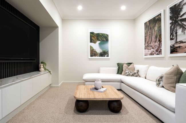 A rare opportunity to own a beautifully appointed ex-display home that is barely more than 12 months old. The Airlie 245 is a Montgomery Homes display home located in the sought-after Cameron Grove Estate at Edgeworth. Professionally styled and meticulously maintained, this home has been used purely as a display – meaning minimal wear and exceptional presentation. The single-storey home offers 4 spacious bedrooms, 2 bathrooms plus powder room, multiple living areas, dedicated home theatre, flexible activity zone and an expansive open-plan kitchen, living and dining space flowing seamlessly to a covered alfresco – ideal for entertaining year-round. Built on a stepped slab, the design maintains a smooth internal flow with only a small set of stairs enhancing separation between zones.